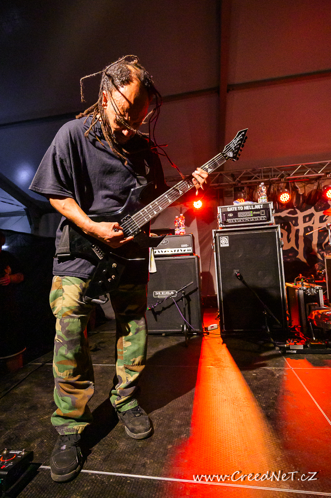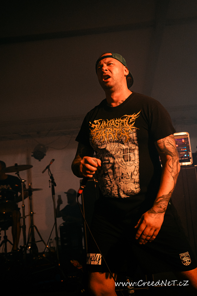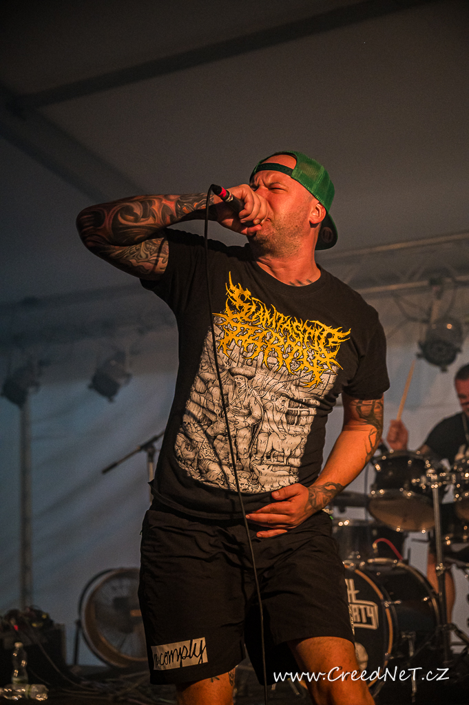 První den začal s kapelami jako Incarnate, Something Like a Bad Victim a pokračoval přes energická vystoupení kapel We All Gonna Die, Necrot a německých Extinctionist. Následovali tuzemští oblíbenci Tortharry a Gutalax. Vrcholem večera byli legendární Suffocation (US), kteří rozproudili dav svým neúprosným výkonem. Slovenský Doomas, slovinská Vulvathrone, F.O.B. a The Corona Lantern uzavřeli den nezapomenutelnými vystoupeními.