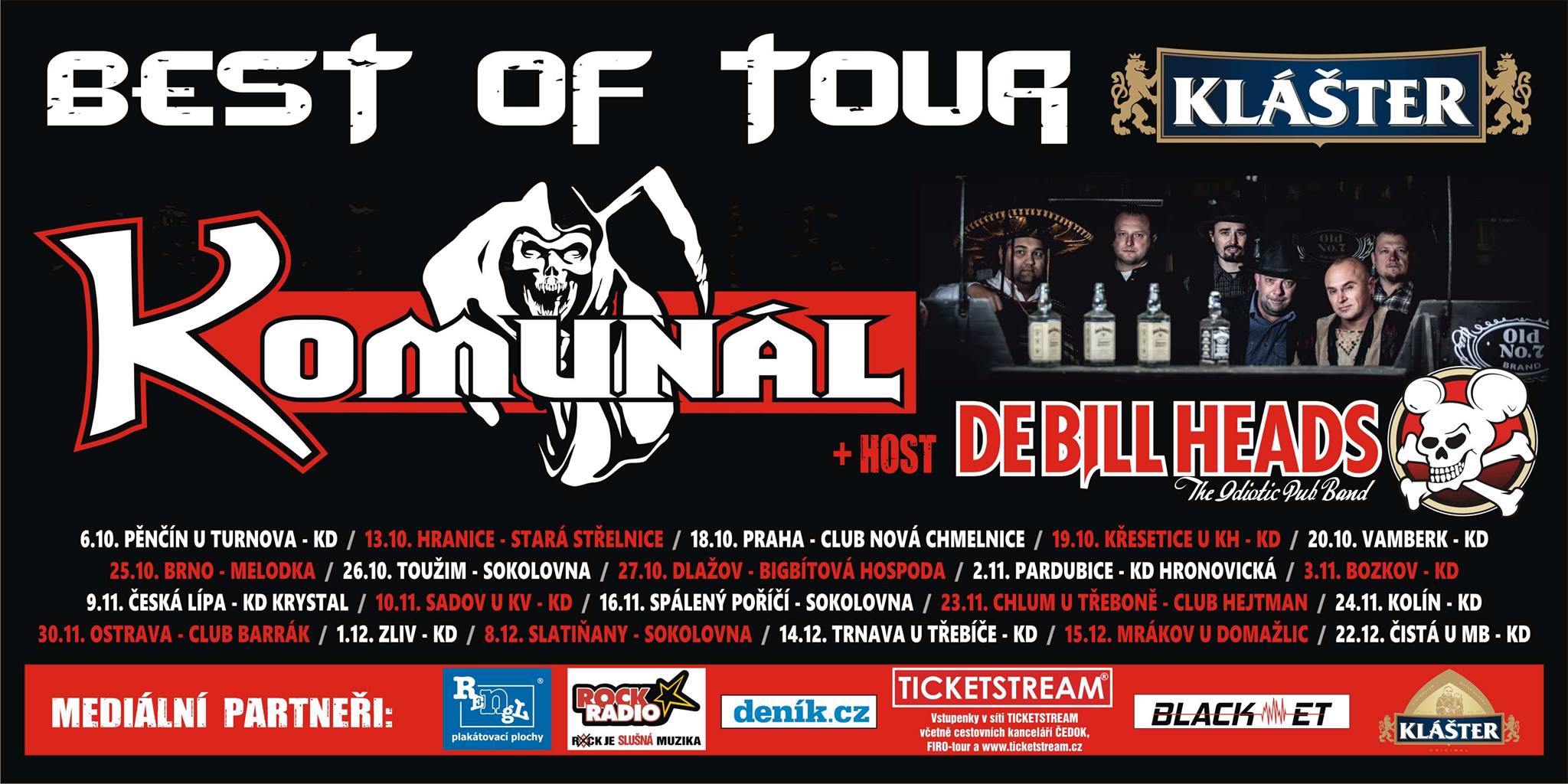 Kapela Komunál vyráží na své samostatné "Klášter best of tour 2018". Jako host se představí De Bill Heads