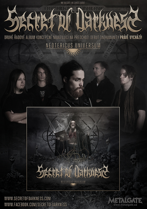 Jedním z často skloňovaných českých jmen mezi mladšími štikami je varnsdorfská parta SECRET OF DARKNESS, grupa pevně rozkročená mezi extrémní a melodičtější větví metalu. Již od roku 2008 se ví o jejím pojetí temné muziky, která by se dala charakterizovat jako melodický black/death metal, jíž ale nechybí ani úniky k jiným žánrům. Ať je to jak chce, pro SECRET OF DARKNESS je důležitá temná atmosféra a neméně temné poselství, které se v podobě příběhu proplétá i nejnovějším albem „Neotericus Universum“.