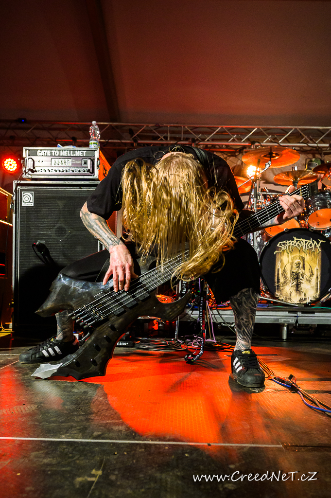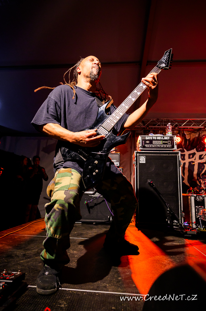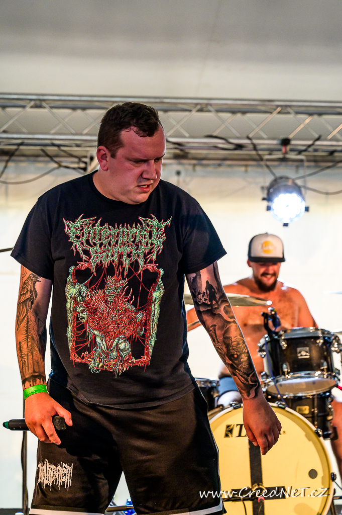 První den začal s kapelami jako Incarnate, Something Like a Bad Victim a pokračoval přes energická vystoupení kapel We All Gonna Die, Necrot a německých Extinctionist. Následovali tuzemští oblíbenci Tortharry a Gutalax. Vrcholem večera byli legendární Suffocation (US), kteří rozproudili dav svým neúprosným výkonem. Slovenský Doomas, slovinská Vulvathrone, F.O.B. a The Corona Lantern uzavřeli den nezapomenutelnými vystoupeními.