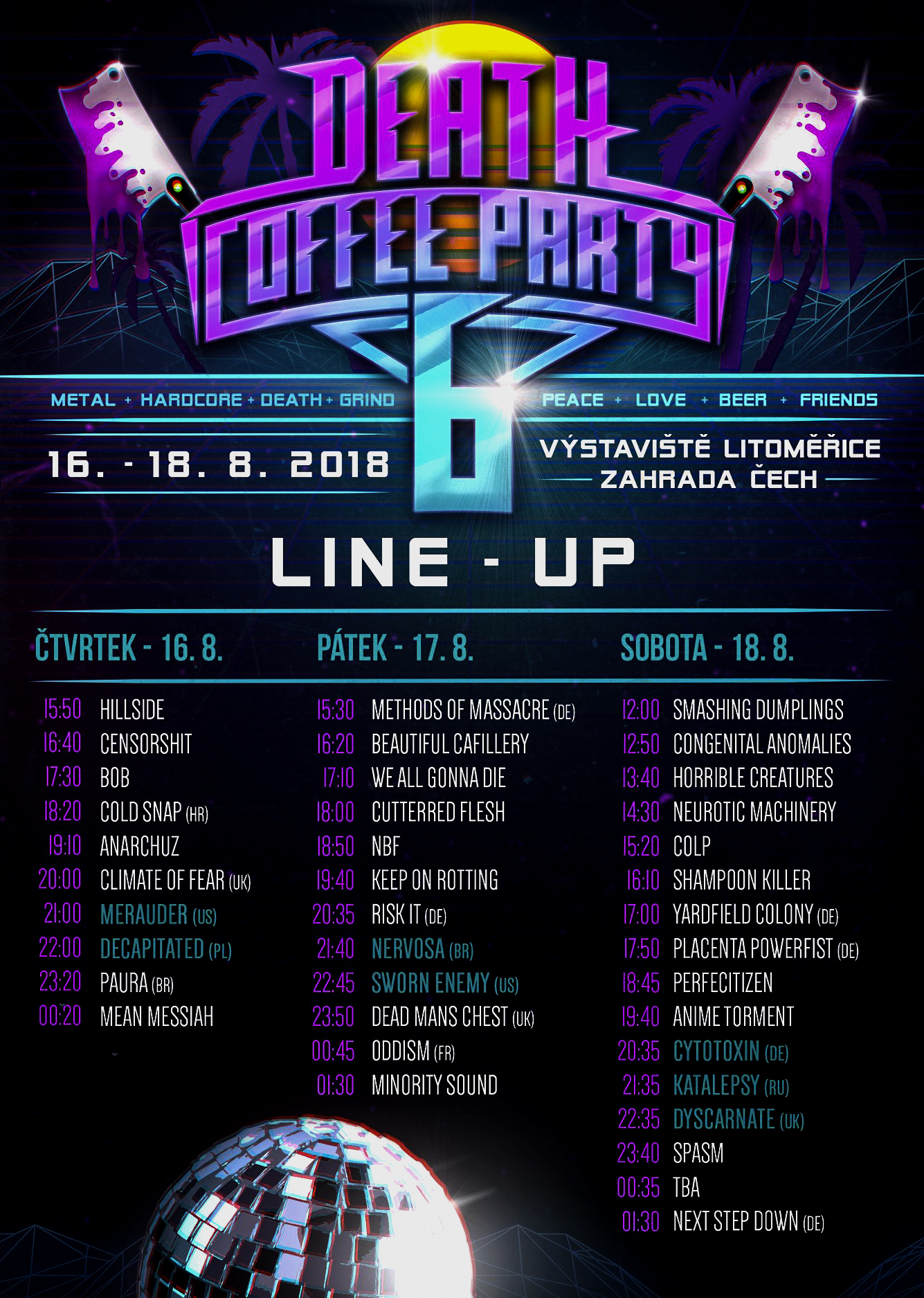 Line- Up Šestého ročníku festivalu Death Coffee Párty 16. 8. – 18. 8. 2018
